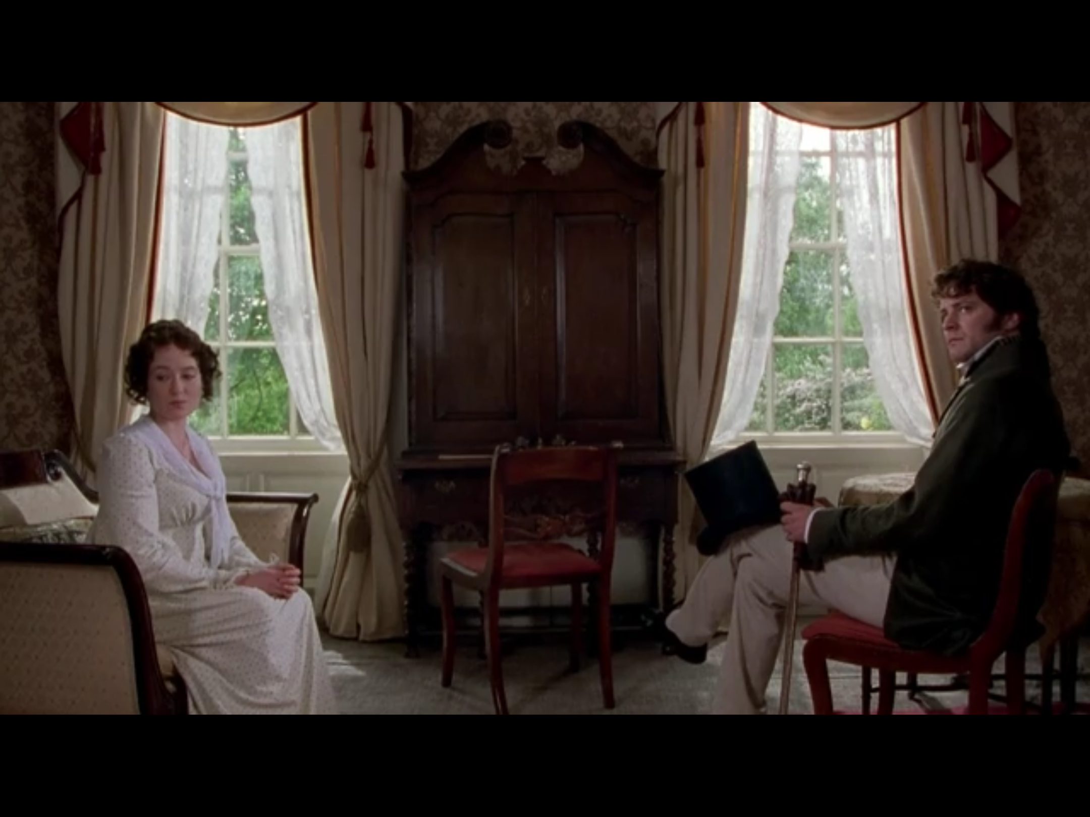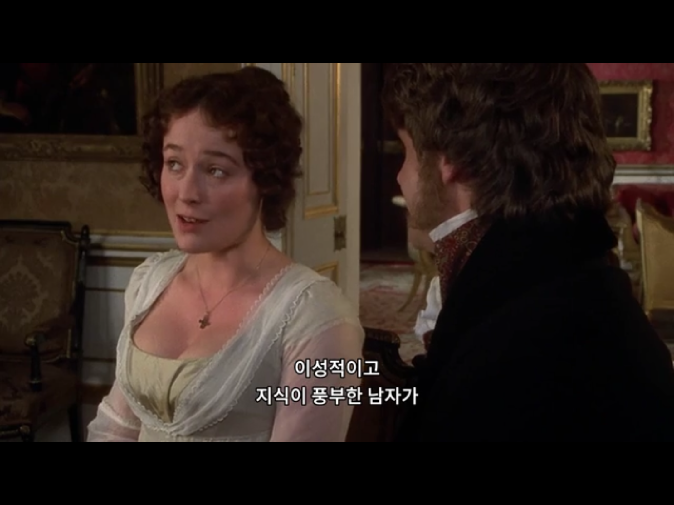 자신의 약점을 말해주는 다아시. 그런 다아시가 이성적으로 지식이 풍부하다고 말하는 리지. 여기서 포인트는! 리지도 다아시의 매력이 무엇인지 알고 있다는 사실.