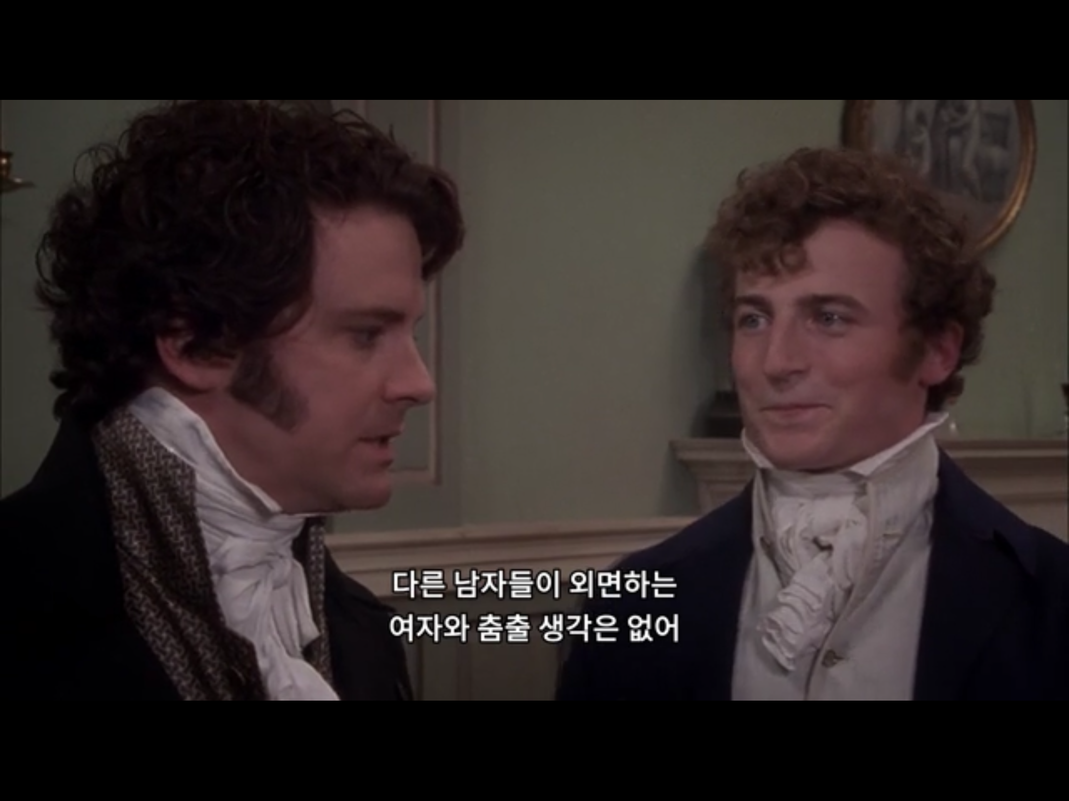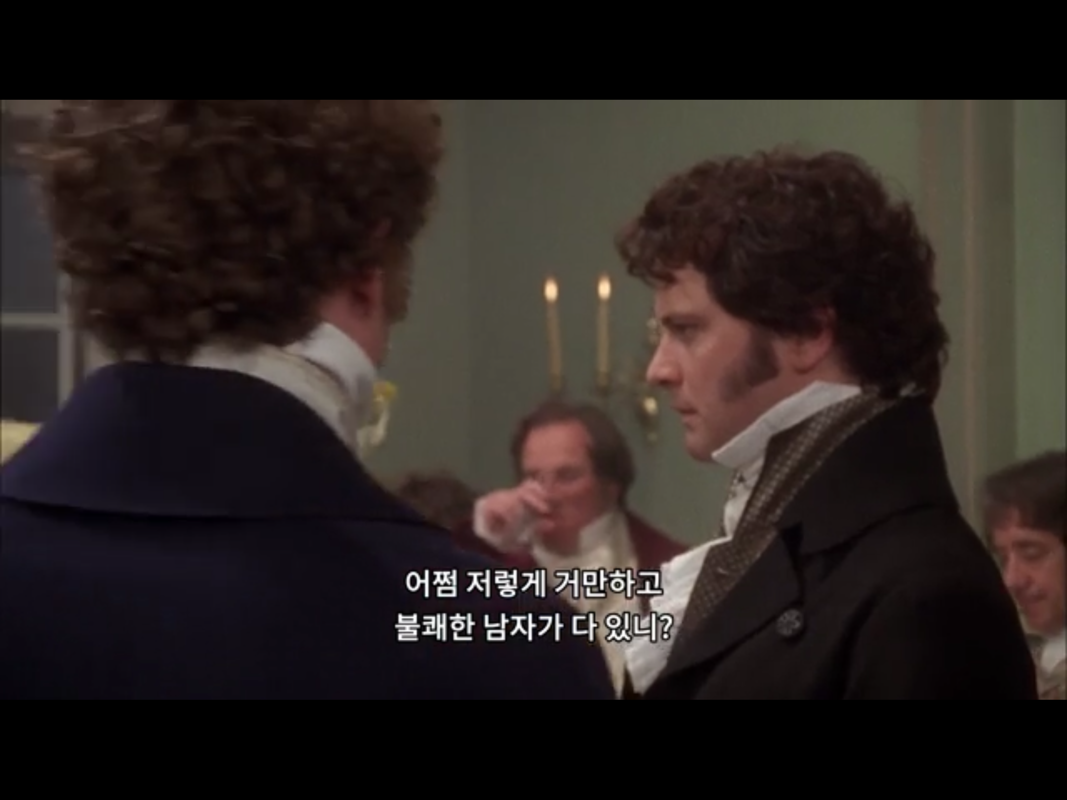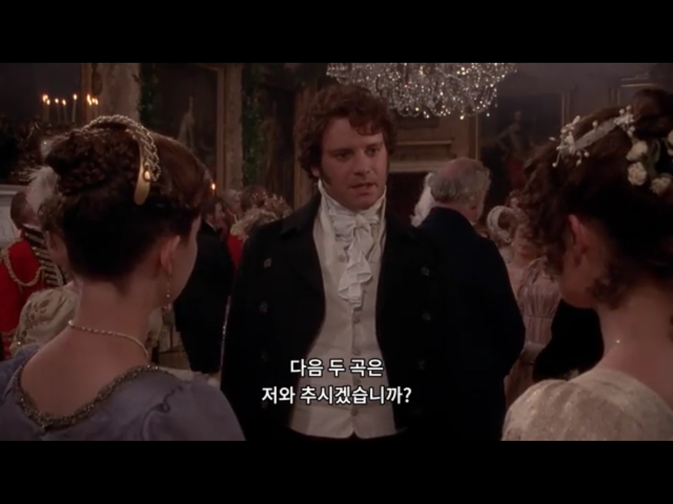 다음 무대회에서 다시 만난 두 사람. 리지만 쳐다보는 다아시. 리지에 대한 호감을 어떻게 표현해야 할 지 모르는 다이시. 좀 웃으라고! 다정하게!!