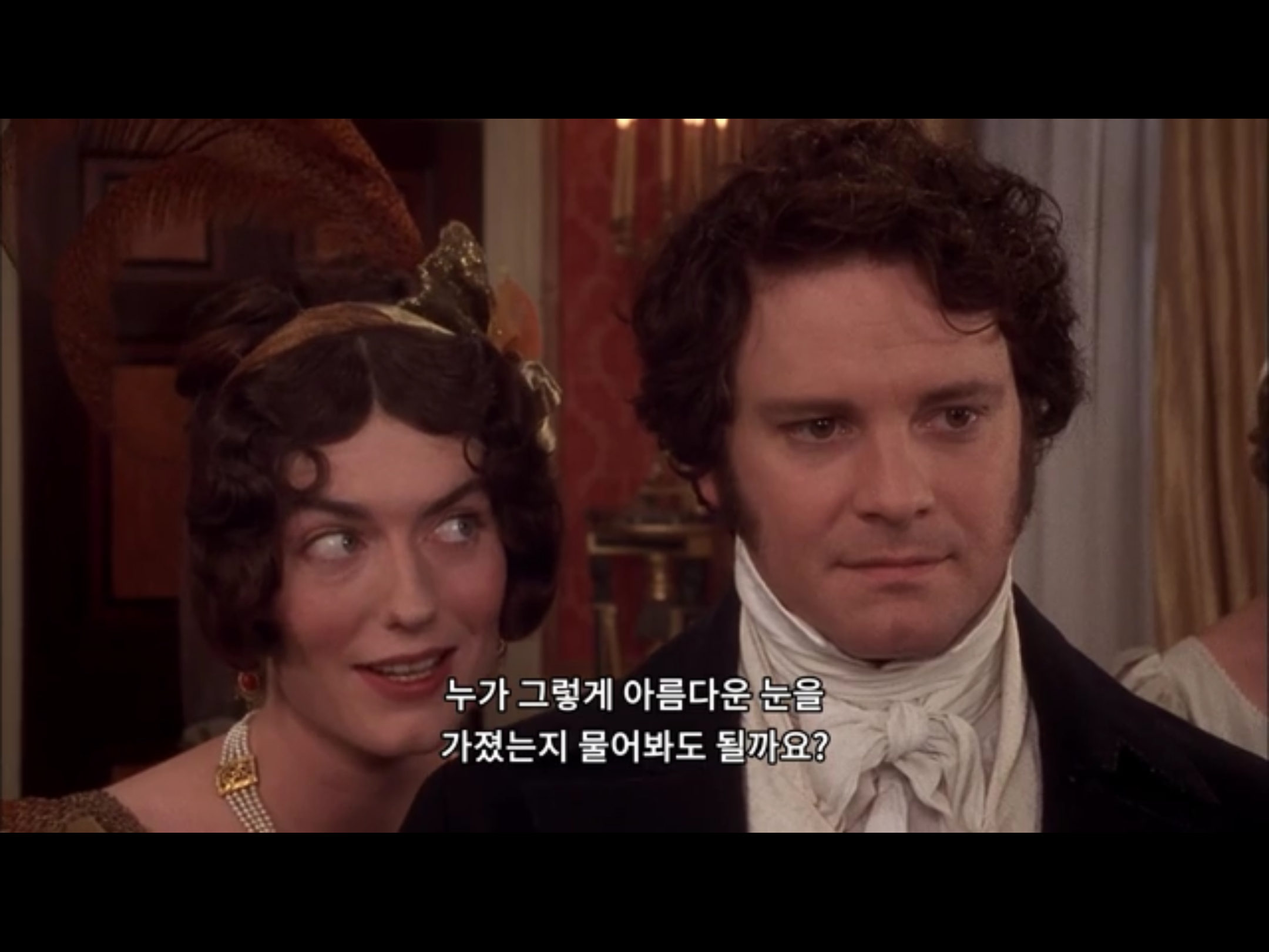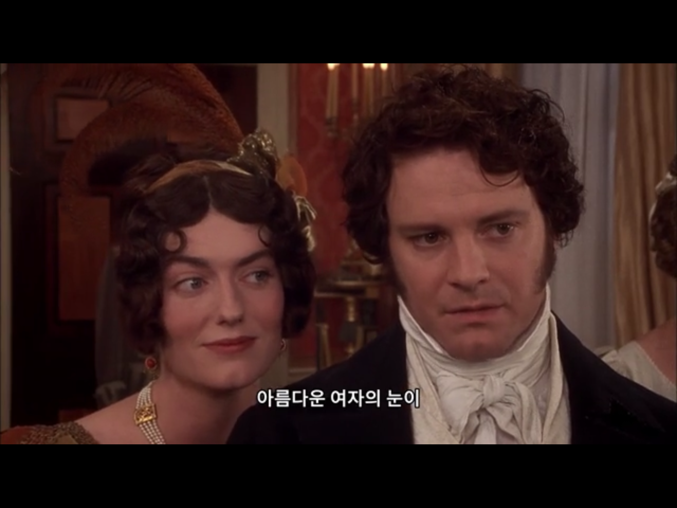 리지를 보는 다아시의 표정. 점점 웃음꽃이 피는군. ㅎㅎㅎㅎ. 흐뭇한 장면. 그리고 리지도 다아시를 다정하게 바라본다.