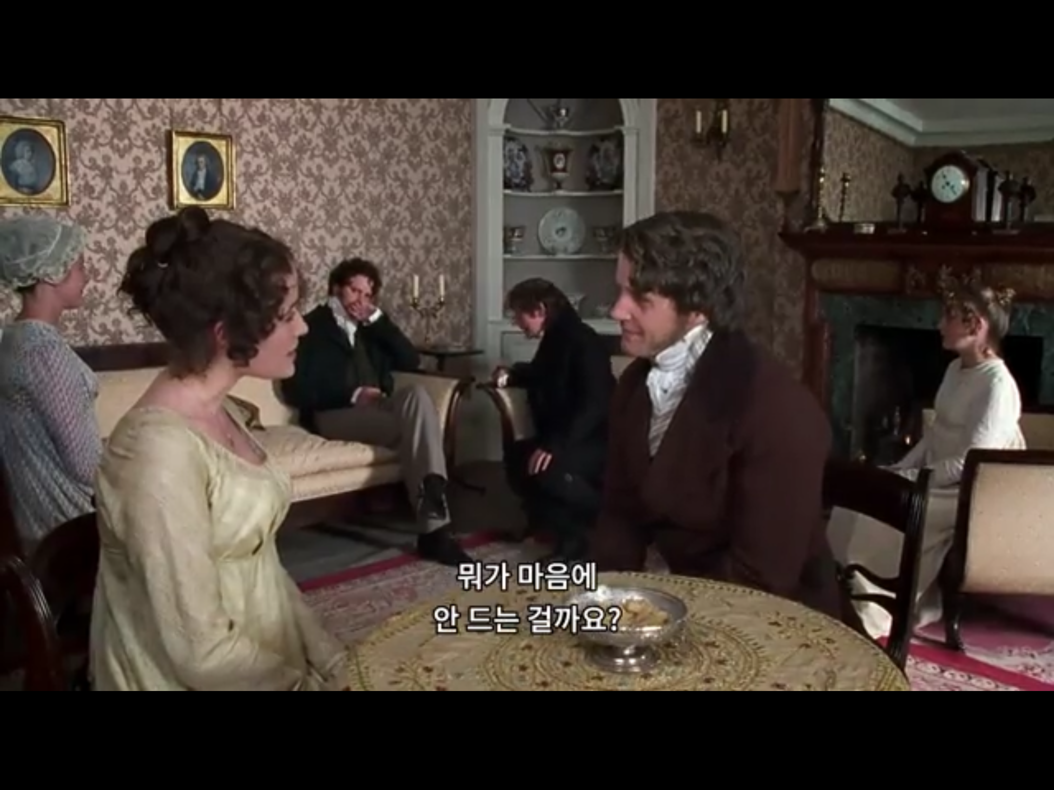 샬롯과 콜린스의 집을 방문한 리지. 그리고 레이디 캐서린의 초대를 받아 찾아간 저택에서 다시 만난 다아시. 다아시의 사촌 피츠 윌리엄 대령과 이야기하던 리지는 자꾸 자신을 쳐다보는 다아시가 신경 쓰인다. 한참을 쳐다보더니 여기에서 다아시가 겨우 꺼낸 말이 “가족분들 모두 건강하십니까?” 라니….. 😩