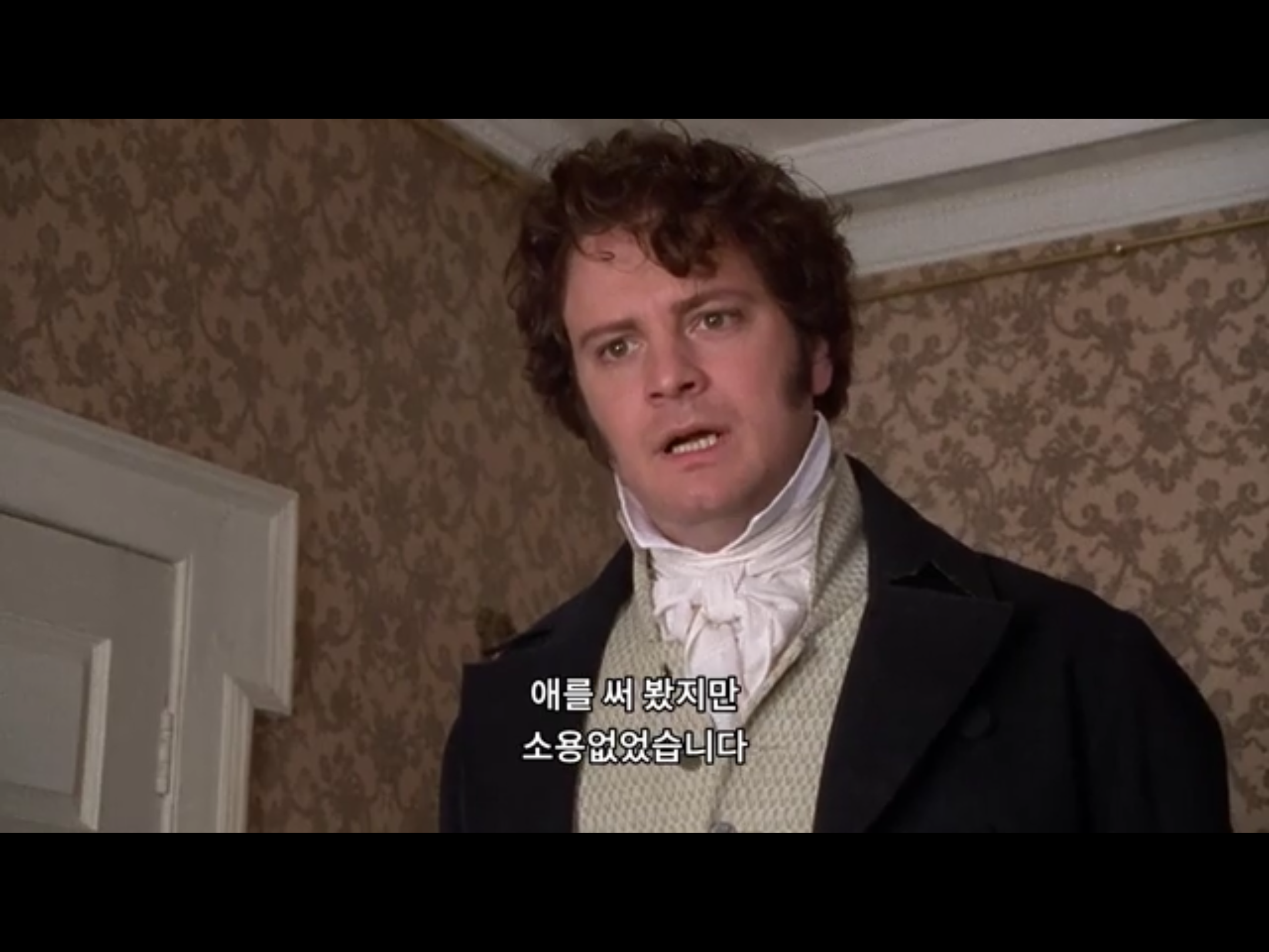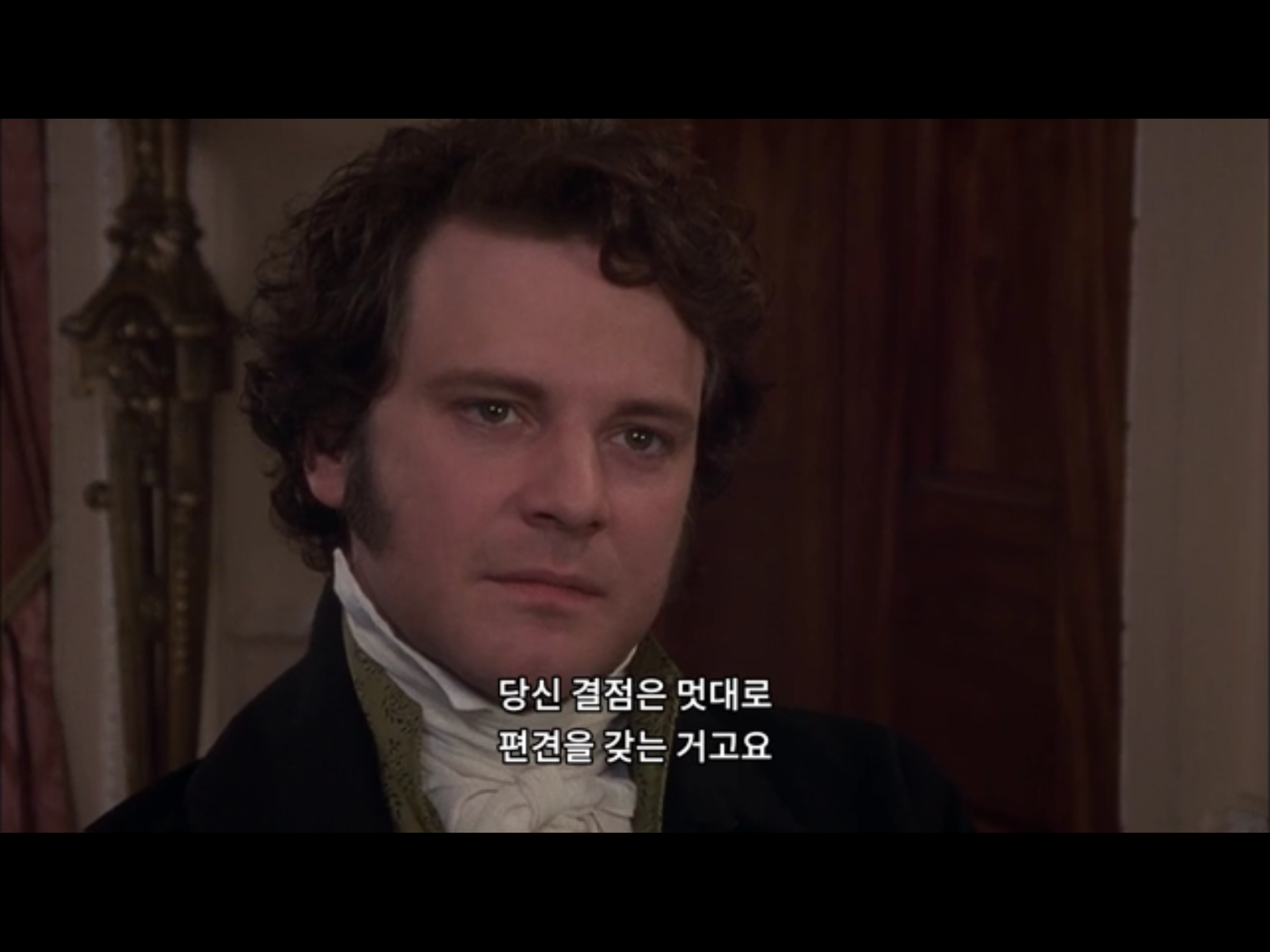 리지가 점점 다가오는 다아시를 밀어내도 다아시는 리지가 본심이 아닌 말을 잘한다는 걸 알고 있다고… 벌써 리지를 파악했군. 진중한 다아시. 멋있어😍